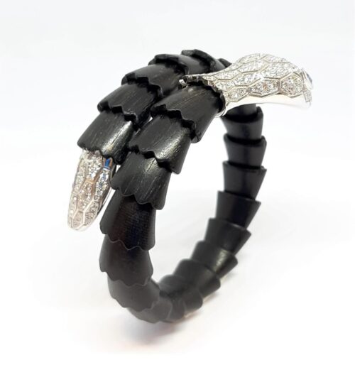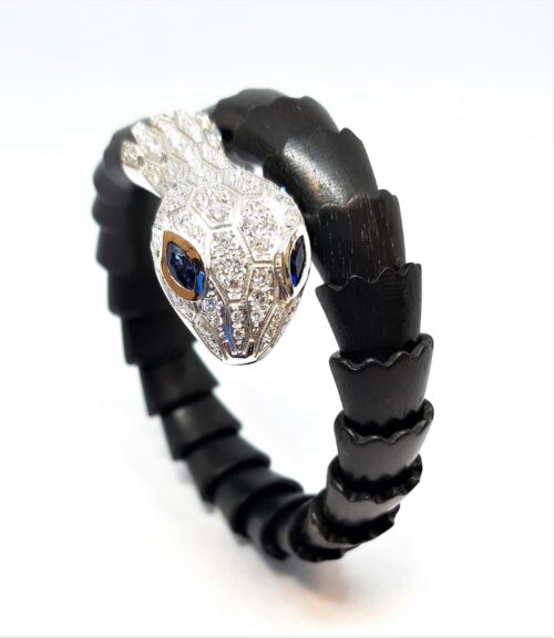 Bracciale “Serpente” in oro diamanti zaffiri e legno
