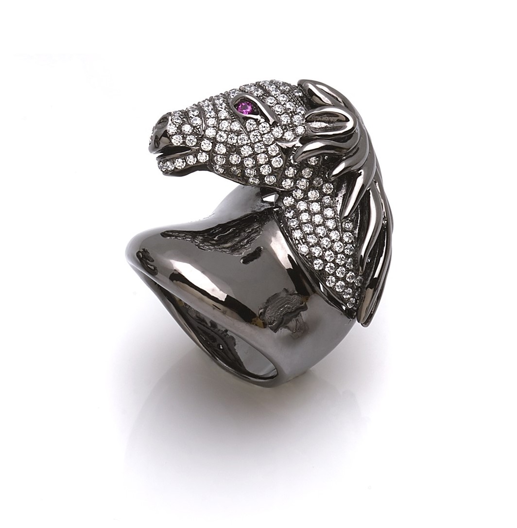 Home/Anelli, NUOVA COLLEZIONE/Anello Cavallo argento e cubic zirconia
