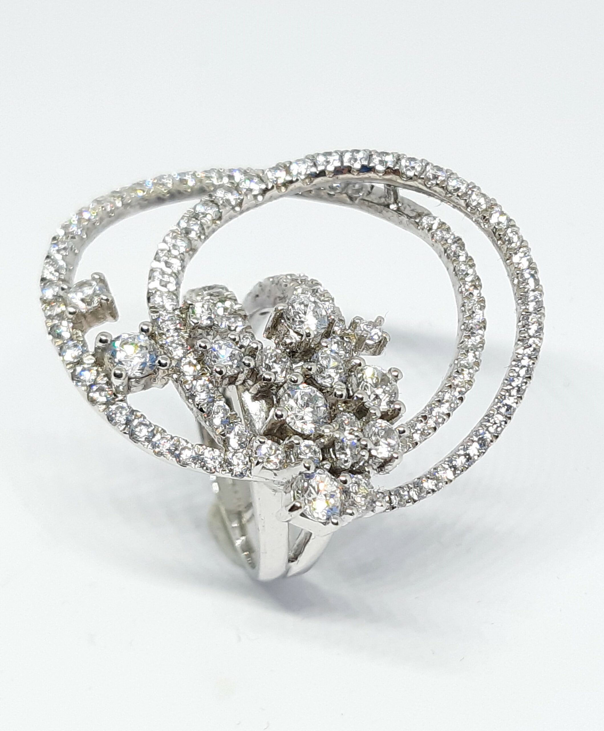Anello fantasia intrecci in argento con cubic zirconia