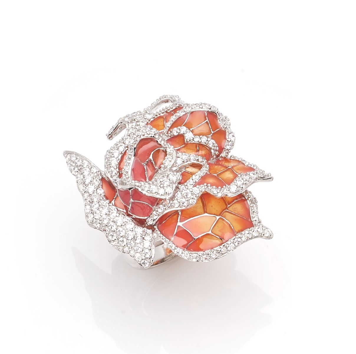 Anello Rosa arancione in argento con smalto e cubic zirconia