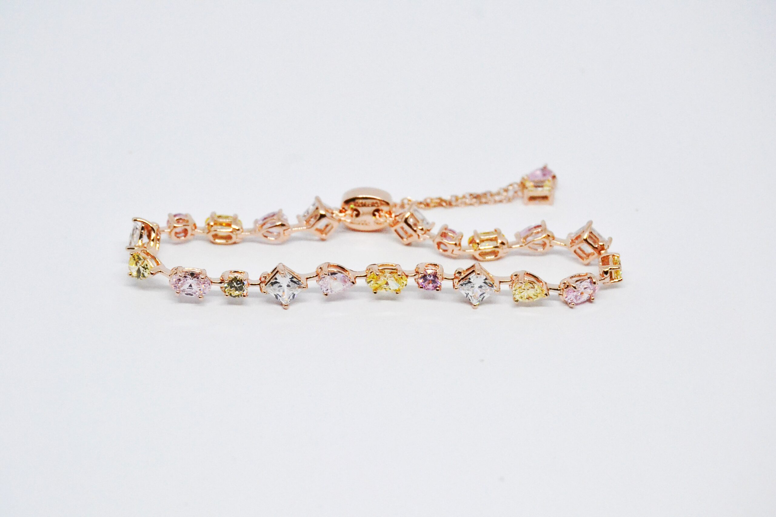 Bracciale a molla Mix argento 925 placcato oro rosa 18kt con incastonati cubic zirconia colorati