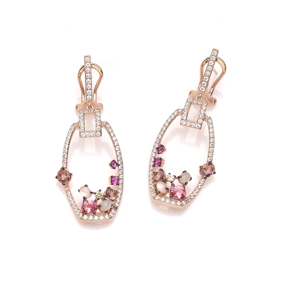 Orecchini Flora in argento 925 placcaro oro rosa 18kt con incastonati cubic zirconia