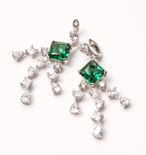 Orecchini Goccia verde argento e cubic zirconia