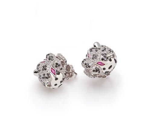 Orecchini Pantera argento, cubic zirconia e smalto